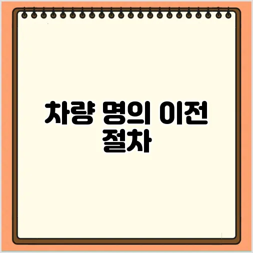 차량 명의 이전 절차는 다음과 같습니다. 1) 매도인이 차량등록증, 위임장, 매매계약서를 준비합니다. 2) 매수인이 신분증, 주민등록등본을 준비합니다. 3) 해당 구청이나 시청의 차량등록사업소에 방문하여 서류를 제출하고 수수료를 납부합니다. 4) 새로운 차량등록증이 발급됩니다.