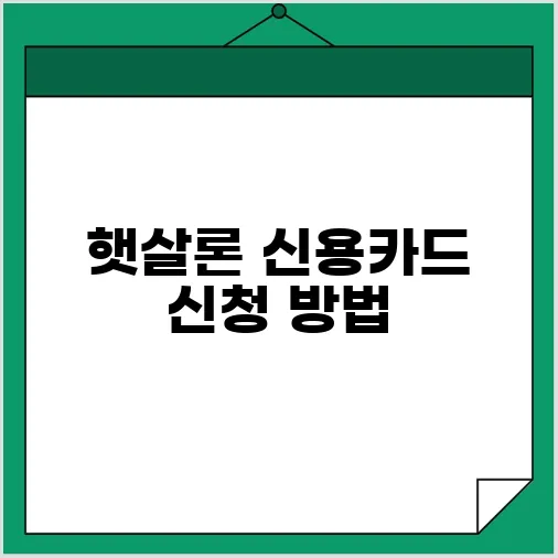 햇살론 신용카드는 온라인을 통해 신청할 수 있으며, 해당 금융기관의 홈페이지에 방문하여 신청서를 작성하면 됩니다. 필요 서류로는 신분증, 소득증명서, 거주증명서 등이 있으며, 이 서류들을 준비해 제출해야 합니다.